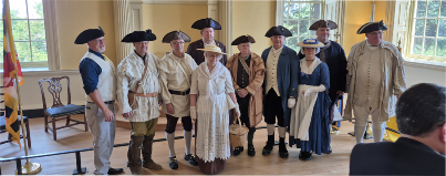 The John Paul Jones Chapter, one of fifteen regional Maryland Society Chapters, is the largest of the chapters comprising the greater State Society with close to 100 active members on the rolls. It’s an exciting time to be an active member of the John Paul Jones Chapter as many unique events will be celebrated across the nation in commemoration of the 250th Anniversary of the American Revolution. Events not unlike our recent Chapter’s amazing commemoration of the burning of the Brig Peggy Stewart here in Annapolis on 19 Oct 1774 are happening all around us in 2025 and the years to come. I encourage everyone to participate in as many ‘America 250’ events as possible. If you are an active Chapter member, by attending ‘America 250’ events, members of our Society can earn points towards the award of unique America 250 medals. Information on the new medal can be found at our America 250 page